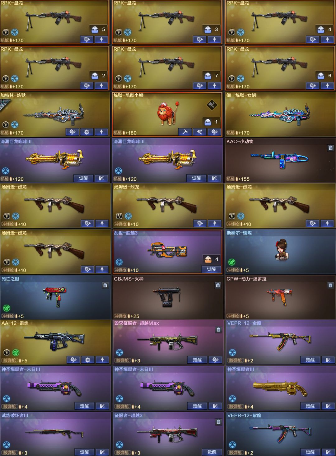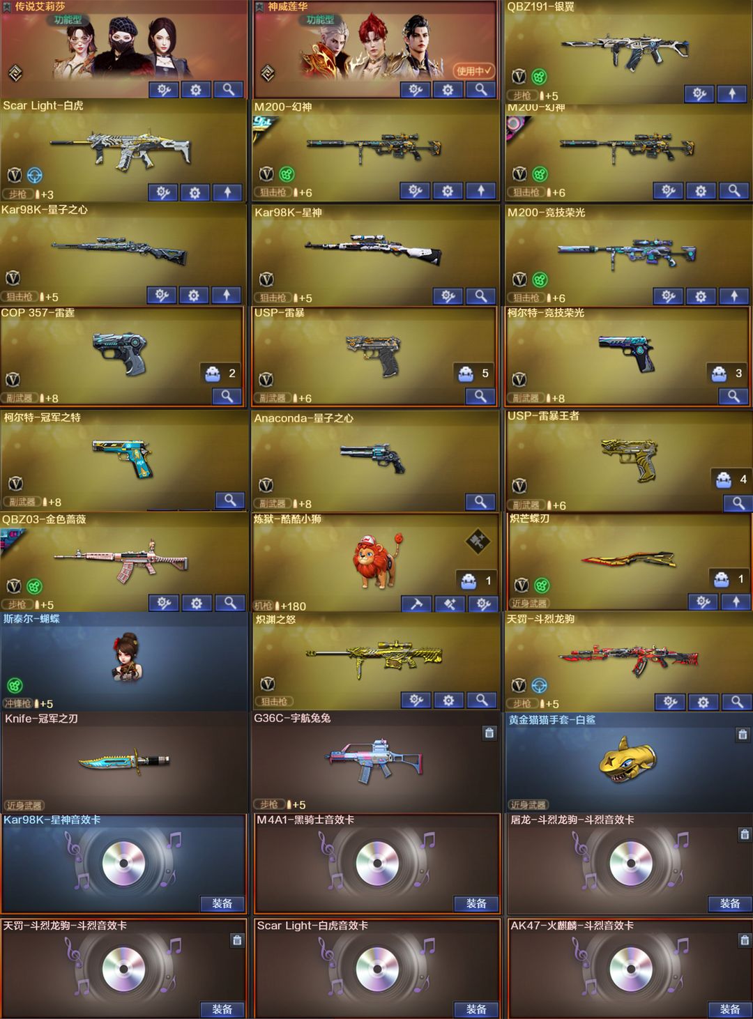 枪3莲华艾莉莎小狮子星神+卡/幻神宠儿冠军5皮/白虎雷暴Qbz冠军特刃白鲨手套