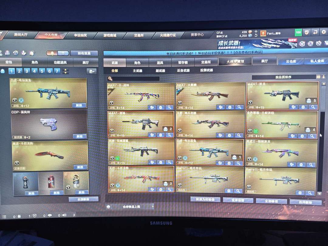 6烈龙+死亡之眼,幻神m200带皮肤,生化皮肤带无需换弹,雷神黑龙QBZ白虎电玩蓝兔英雄武器等
