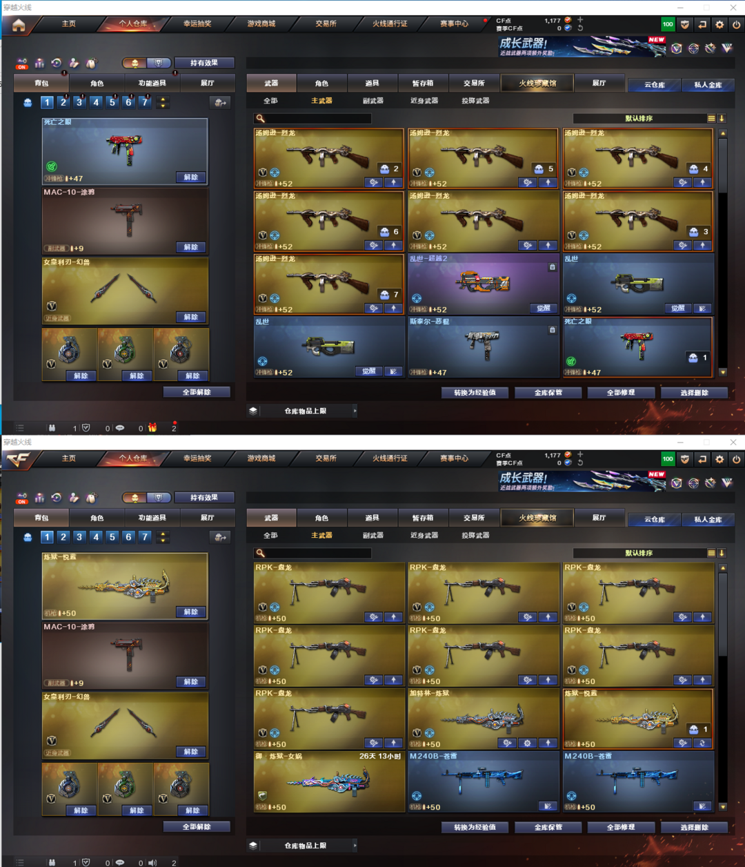 排位:可以-----------------生化:无需换弹、6烈、6盘龙、炼狱、NAC涂鸦、超级对讲机、、、、、、爆破全装:幻兽沙鹰、1套幻兽、、、各种英雄级武器