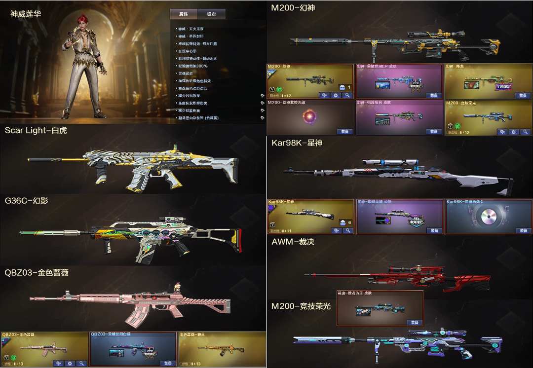 神威莲华4防♉幻神4皮EP+星神巅峰音效卡+裁决胜者✅白虎幻影QBZ蔷薇+8满副6柯尔特2COP♉
