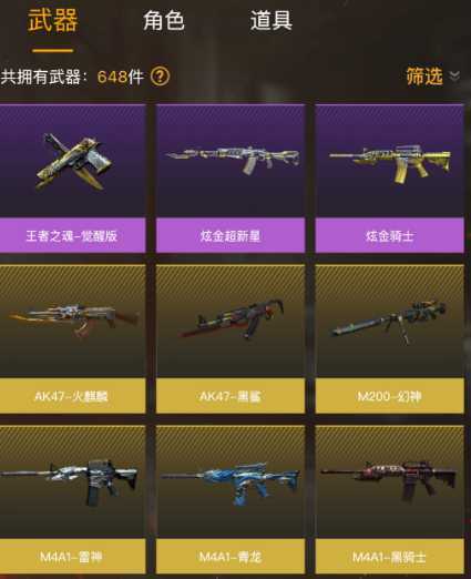 王者之魄❥M200-幻神❥黑武士-锦绣游龙❥AK47-火麒麟❥M4A1-黑骑士❥白虎青龙❥大圣黑鲨❥