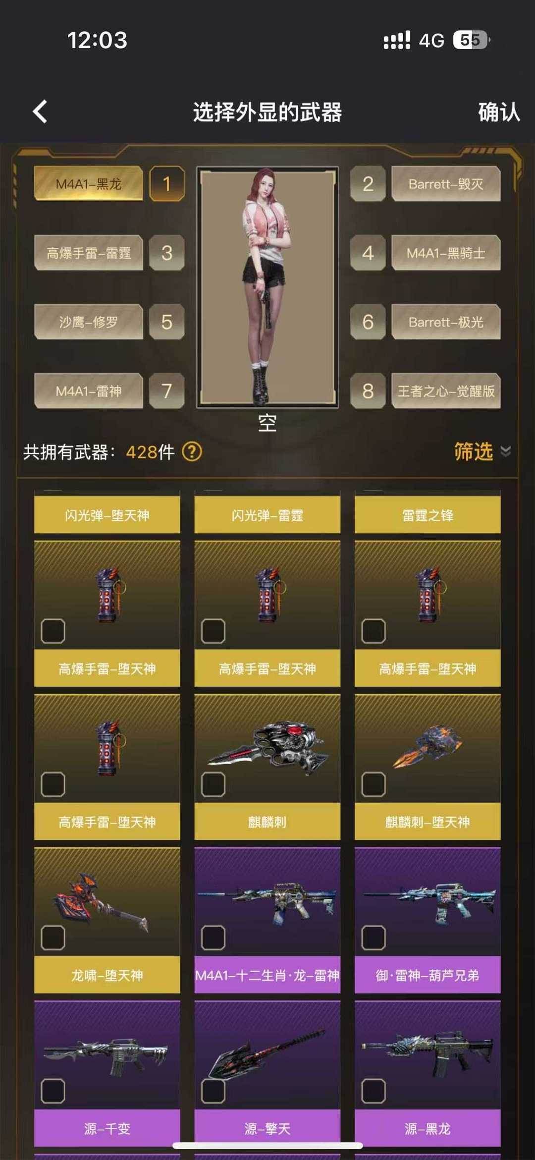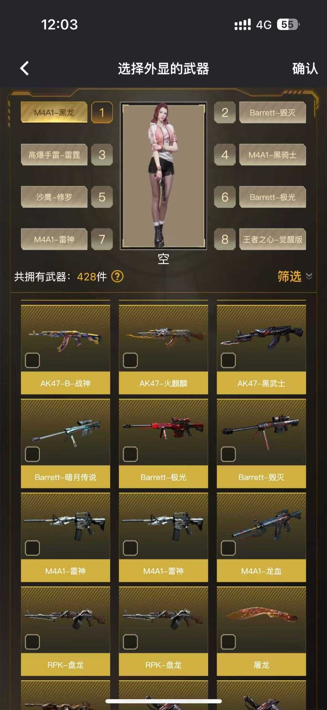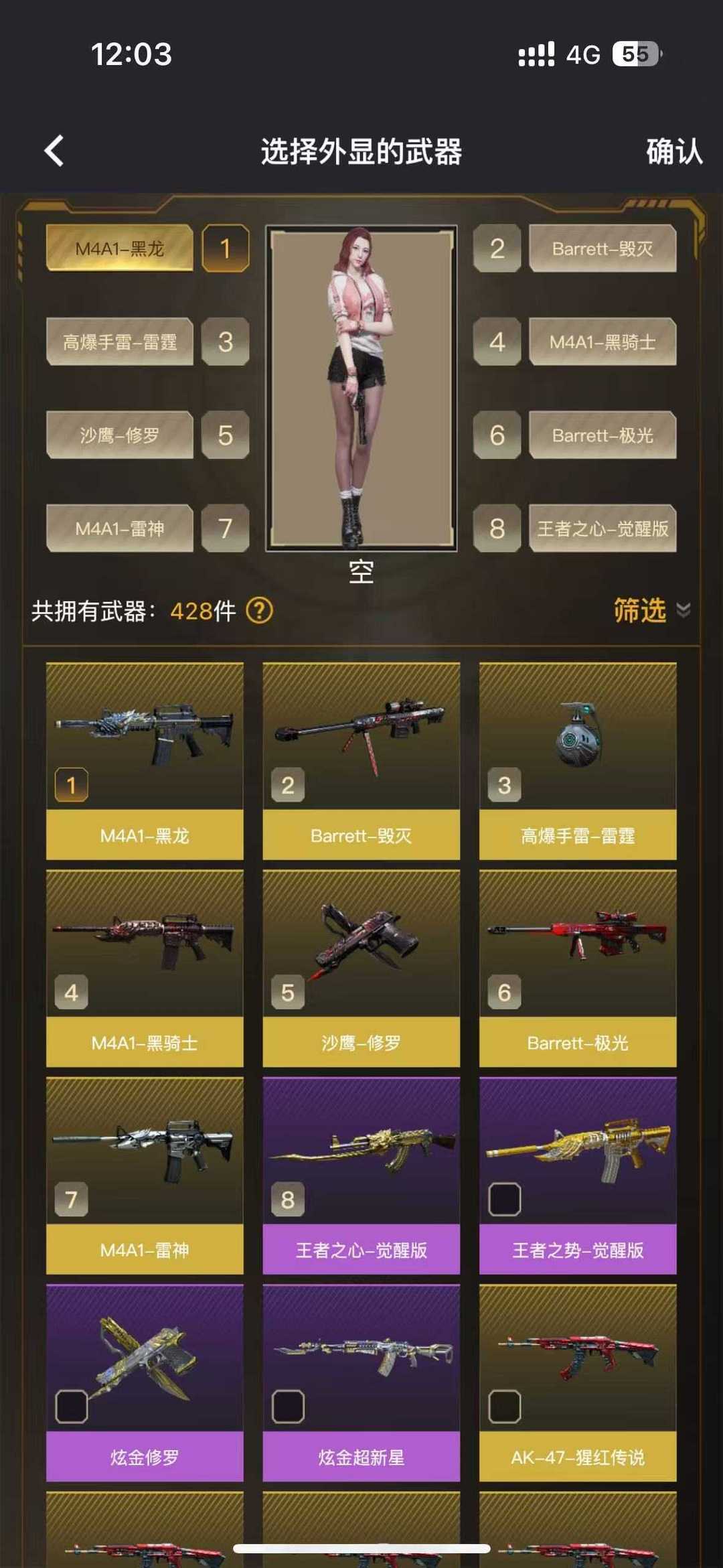 王者炫金级❤️M4A1黑龙黑骑士雷神❤️堕天神8套❤️AK47火麒麟AG❤️潘多拉X❤️迷迭香