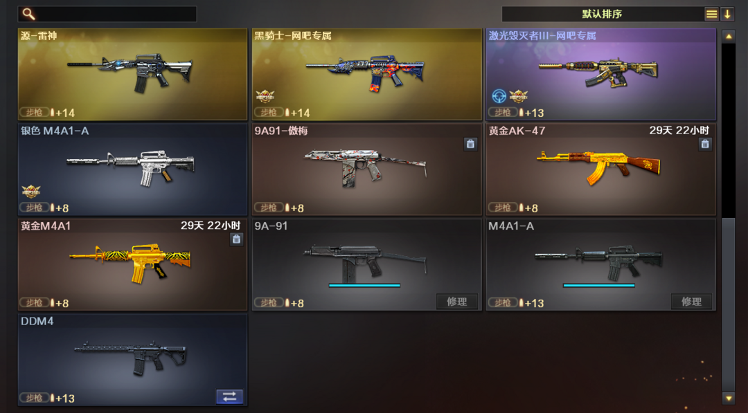 M4A1-玫瑰精灵屠龙AWM-天龙沙鹰-修罗加特林-炼狱M4A1-雷神Scar Ligh