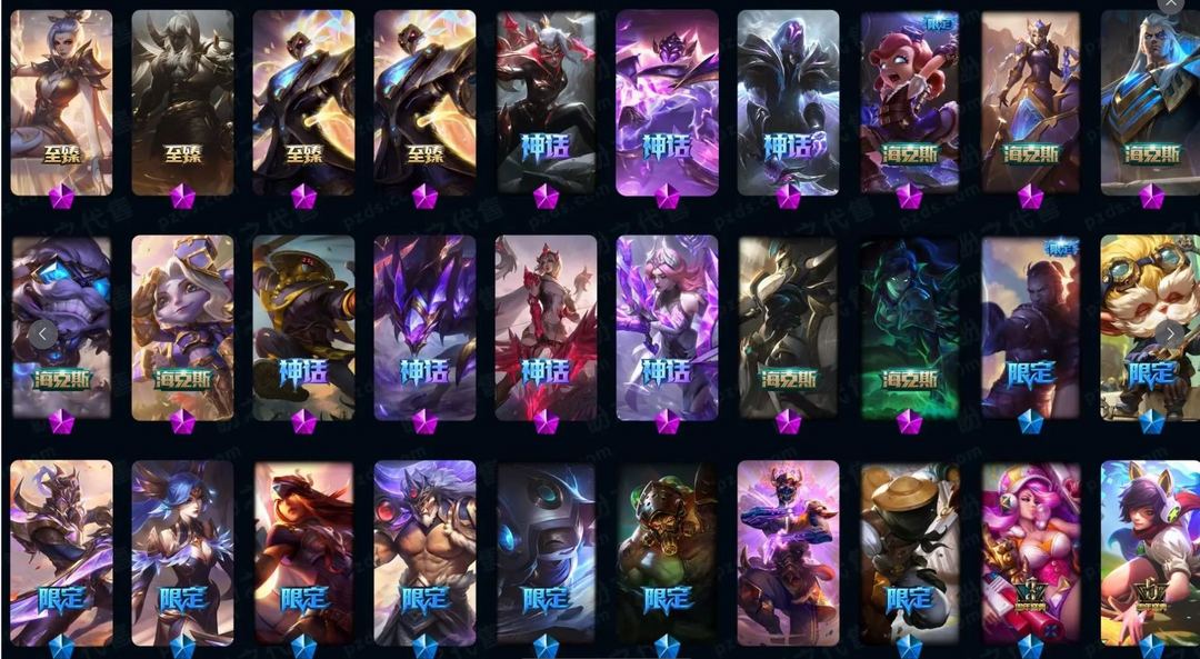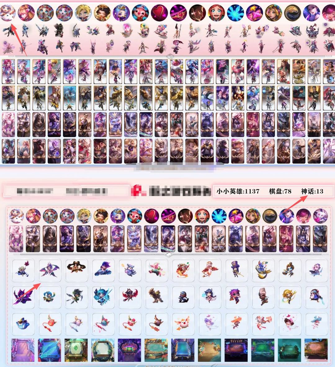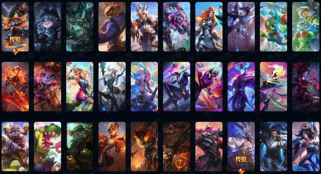 联盟五区1545皮+2934皮⚡全神话至臻可排⚡云顶17神话猫猫猪妹头妹子号战队套全套不缺⚡皮肤随时