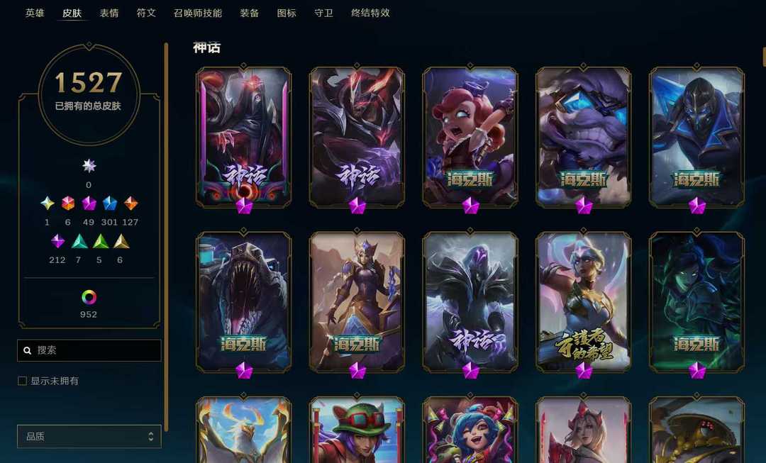 禁排位1527原皮⚡49神话⚡圣堂佛爷⚡3神话幻想⚡机神诺手海魔至尊狼神安蓓萨影武者剑圣EDG全套