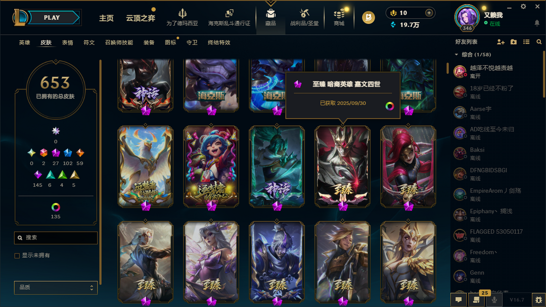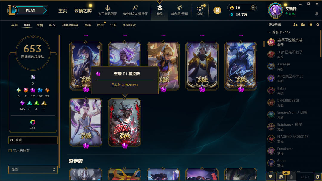 联盟四区1324皮52神话可排⚡️最新至臻塞拉斯双城2杰斯⚡️墨之影武者斩星剑圣⚡️温泉套新皮已更新