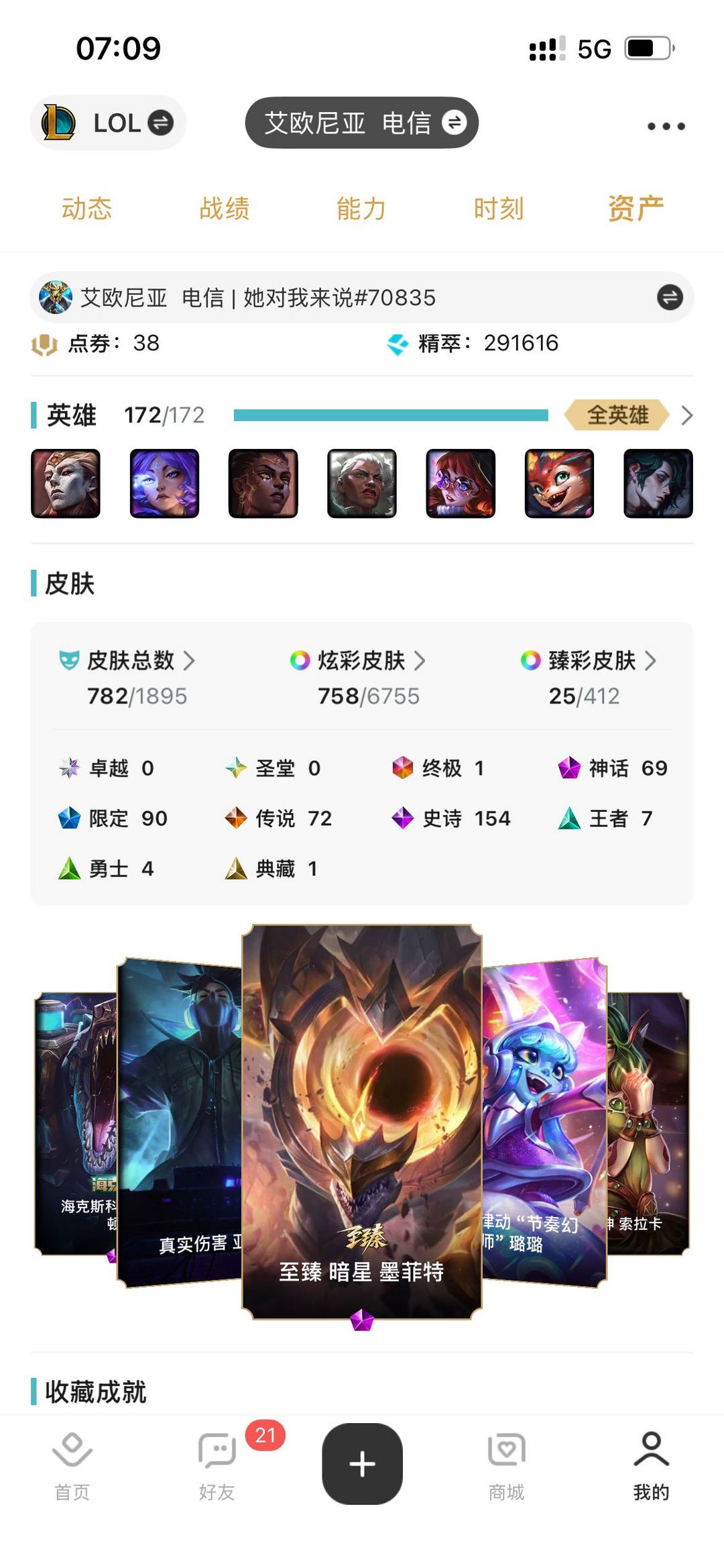 [艾欧尼亚]钻石4可排位⭐️原皮783⭐️炫彩734⭐️段位真时⭐️真实描述.