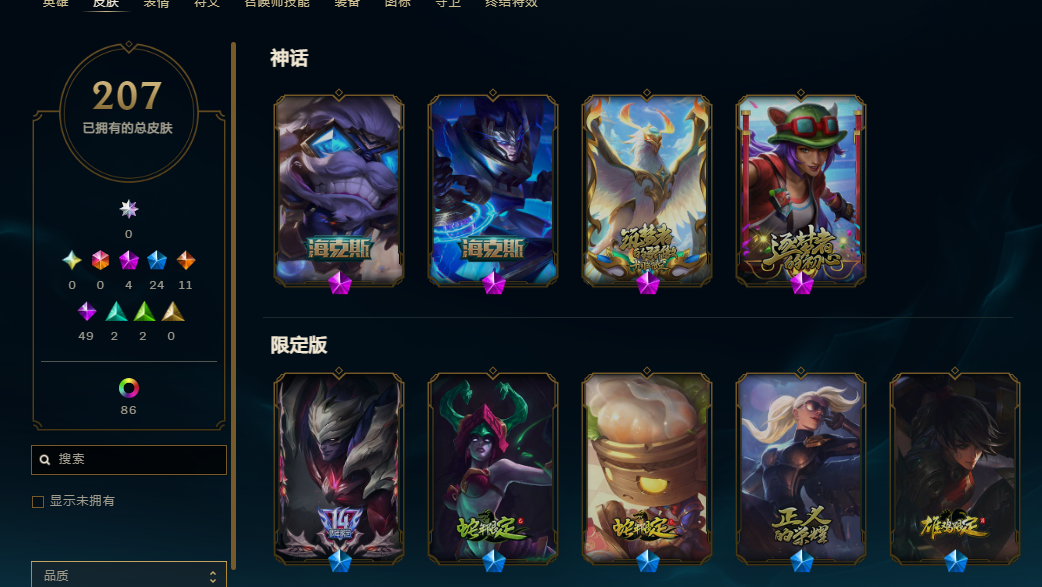 段位:86级 荣耀黄金II
