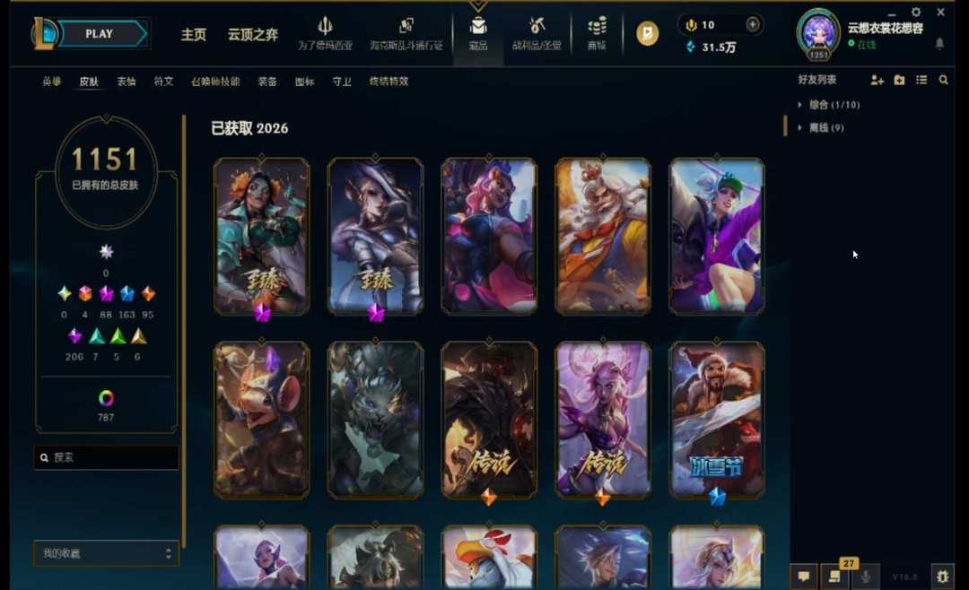 1150原皮❤️88神话❤️高质量❤️多限定传说❤️艾欧尼亚❤️钻石局❤️可排位