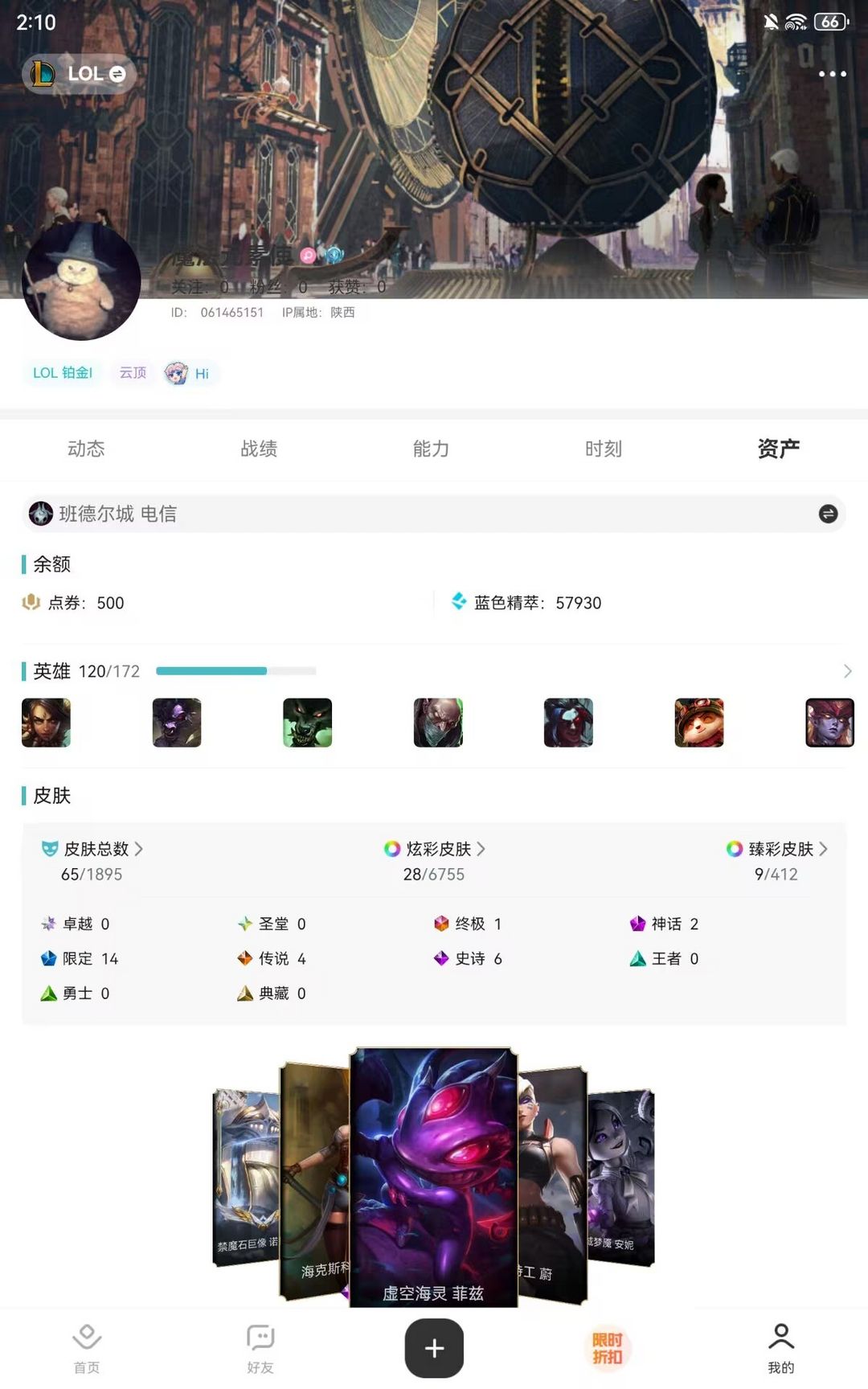 120英雄号上还有1.4万蓝色精粹,缺什么英雄自己买。65原皮(1终极2神话14限定4传说4史诗)28炫彩9臻彩