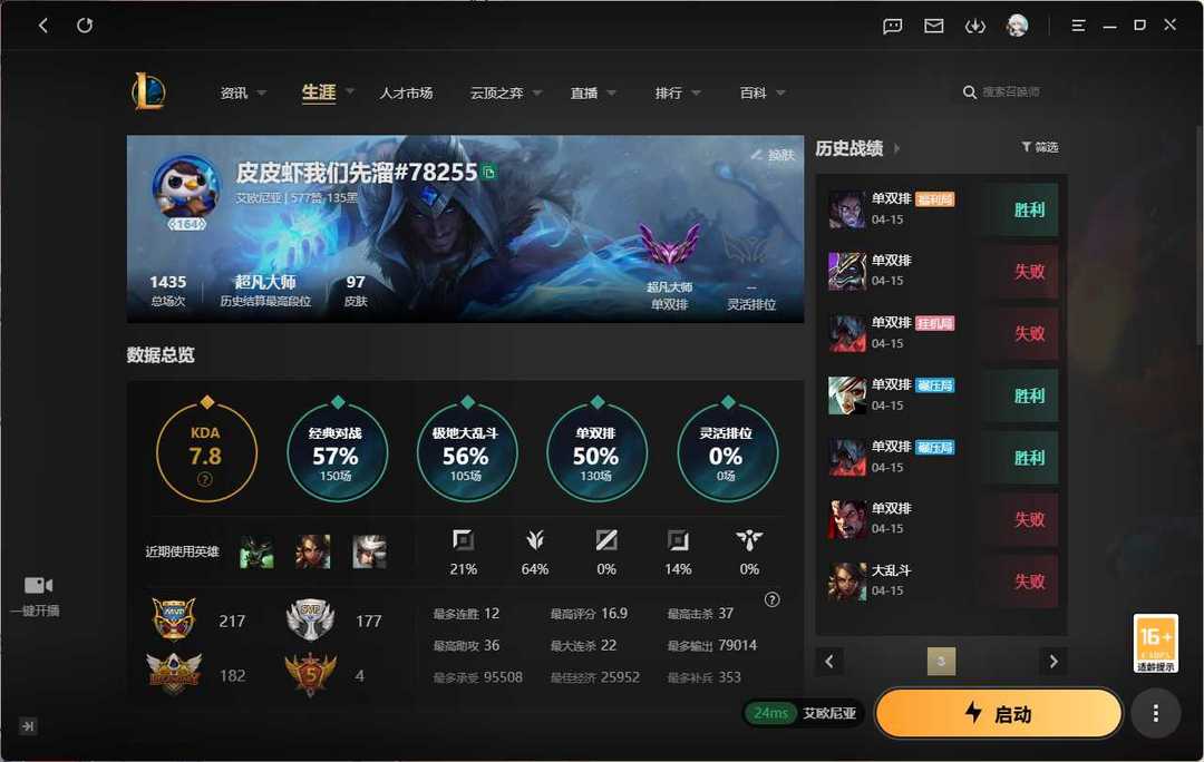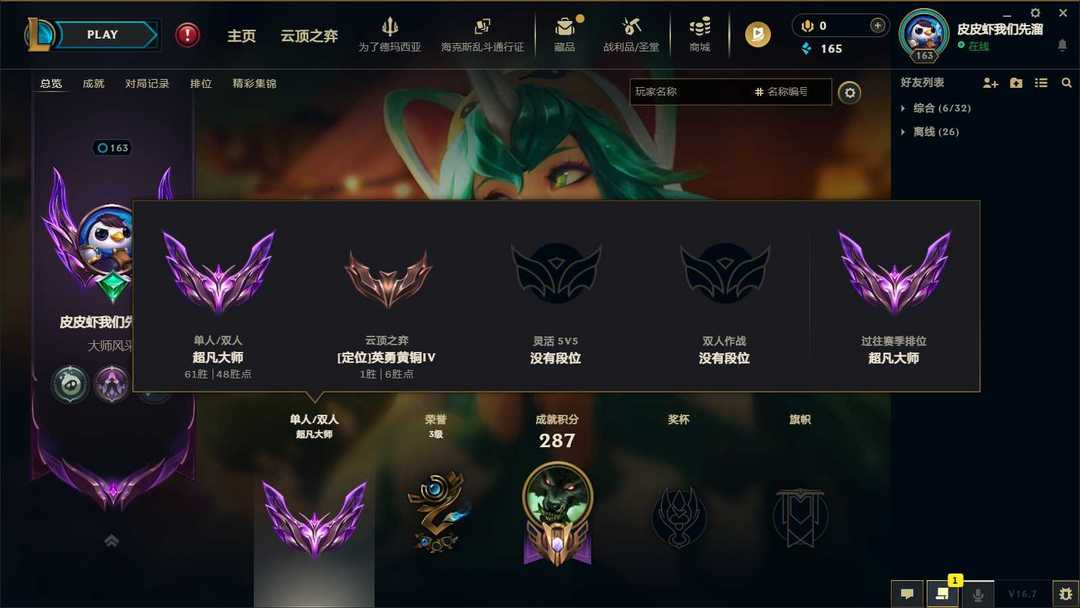 段位:164级 超凡大师