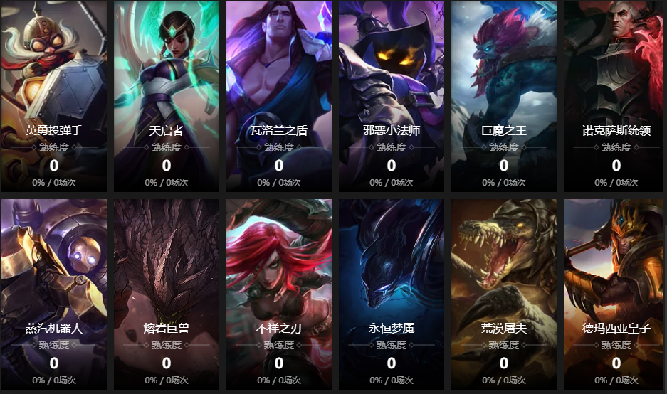 寒冰射手;皮城女警;迅捷斥候;赏金猎人;黑暗之女;狂战士;德邦总管;诡术妖姬;猩红收割者;远古恐惧;无极剑圣;牛头酋长;亡灵战神;战争女神;众星之子;麦林炮手;祖安怒兽;雪原双子;蛮族之王;武器大师;堕落天使;时光守护者;痛苦之拥;瘟疫之源;死亡颂唱者;虚空恐惧;殇之木乃伊;披甲龙龟;冰晶凤凰;祖安狂人;琴瑟仙女;虚空行者;刀锋舞者;风暴之怒;海洋之灾;英勇投弹手;天启者;瓦洛兰之盾;邪恶小法师;巨魔之王;诺克萨斯统领;蒸汽机器人;熔岩巨兽;不祥之刃;永恒梦魇;德玛西亚皇子;齐天大圣;复仇焰魂;盲僧;暗夜猎手;魔蛇之拥;大发明家;沙漠死神;狂野女猎手;兽灵行者;圣锤之毅;酒桶;不屈之枪;探险家;铁铠冥魂;离群之刺;德玛西亚之力;曙光女神;刀锋之影;放逐之刃;暮光之眼;光辉女郎;远古巫灵;龙血武姬;九尾妖狐;潮汐海灵;不灭狂雷;北地之怒;诺克萨斯之手;皎月女神;暗黑元首;暮光星灵;荆棘之兴;虚空之女;疾风剑豪;岩雀;弗雷尔卓德之心;戏命师;暴走萝莉;圣枪游侠;影流之主;时间刺客;皮城执法官;唤潮鲛姬;魔法猫咪;魂锁典狱长;海兽祭司;解脱者;万花通灵;封魔剑魂;腕豪;炼金男爵;不落魔锋