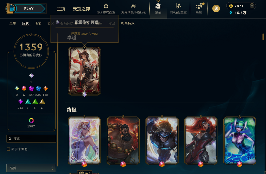 3060P️1361皮肤️️1699炫彩️️128至臻神话️️120传说️️9云顶神话适合各种位置