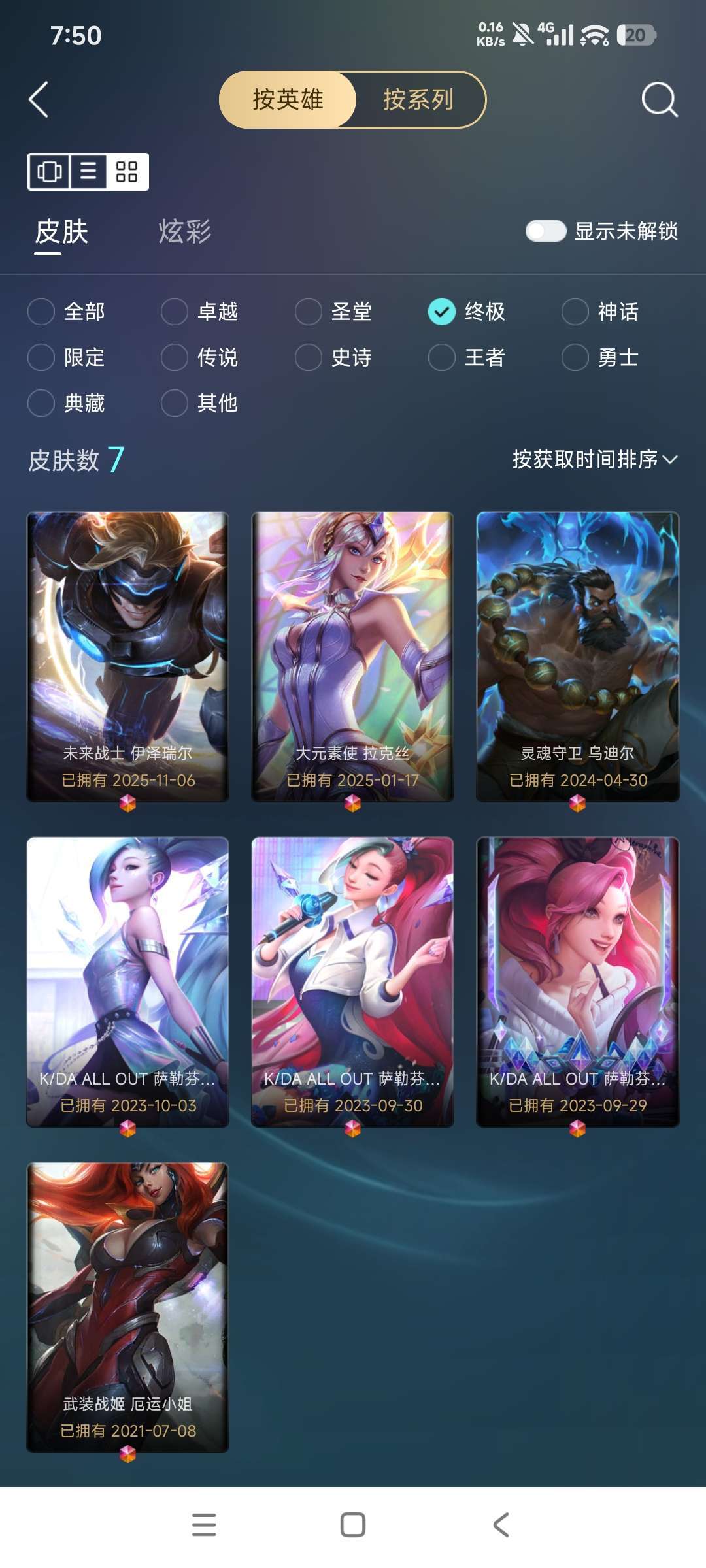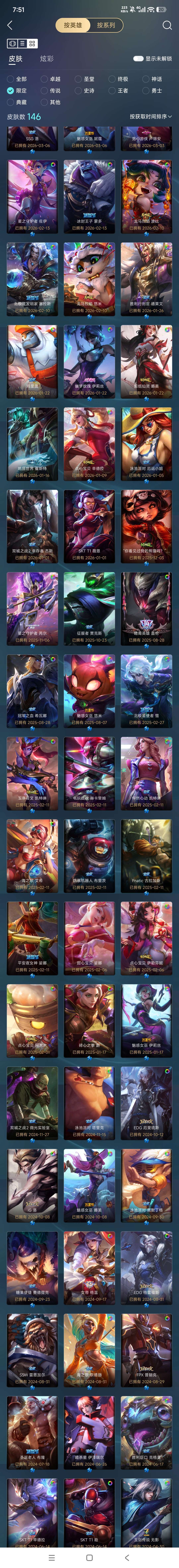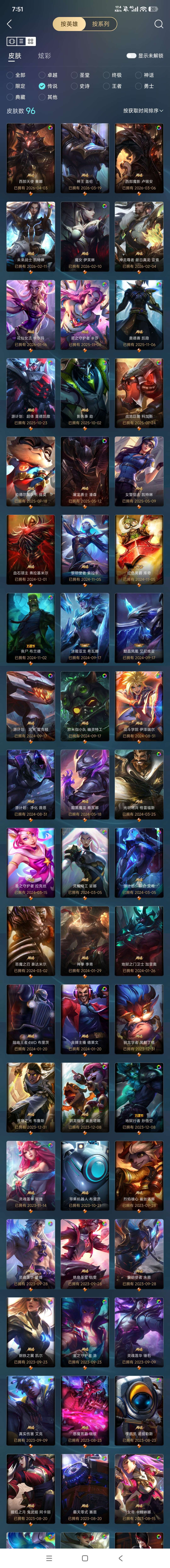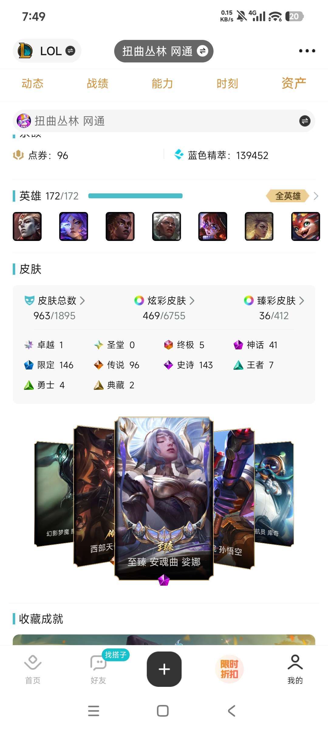 扭曲丛林,可排位,963原皮,41神话,36臻彩,96传说,146限定。