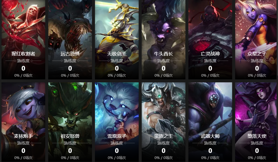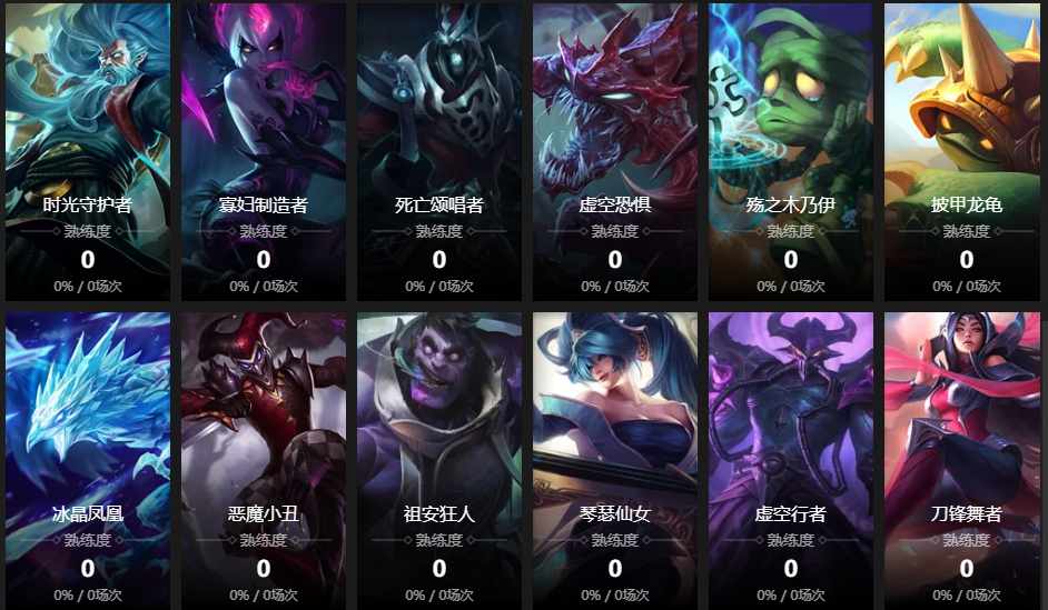 暗夜猎手;迅捷斥候;赏金猎人;黑暗之女;德邦总管;远古恐惧;无极剑圣;牛头酋长;亡灵战神;战争女神;众星之子;麦林炮手;祖安怒兽;雪原双子;寒冰射手;蛮族之王;武器大师;堕落天使;时光守护者;痛苦之拥;死亡颂唱者;虚空恐惧;殇之木乃伊;披甲龙龟;祖安狂人;琴瑟仙女;风暴之怒;瓦洛兰之盾;邪恶小法师;皮城女警;蒸汽机器人;熔岩巨兽;扭曲树精;齐天大圣;复仇焰魂;盲僧;大发明家;沙漠死神;兽灵行者;圣锤之毅;不屈之枪;探险家;德玛西亚之力;曙光女神;光辉女郎;远古巫灵;龙血武姬;潮汐海灵;不灭狂雷;北地之怒;诺克萨斯之手;皎月女神;暗黑元首;暮光星灵;虚空之女;疾风剑豪;弗雷尔卓德之心;戏命师;暴走萝莉;圣枪游侠;影流之主;皮城执法官;唤潮鲛姬;魔法猫咪;海兽祭司;腕豪