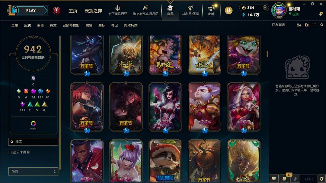 【LOL大王】1300P乄950皮乄333炫彩乄37臻彩乄34神话乄184限定乄龙虾乄玉剑男刀