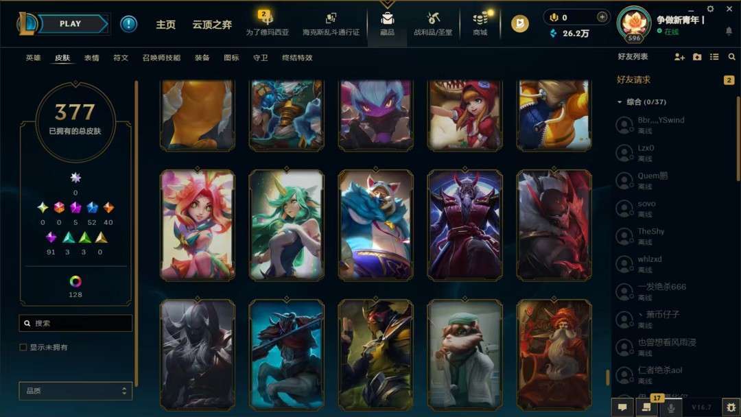 弗雷尔卓德全英雄精品号|377皮肤+261小小英雄,多限定高性价比