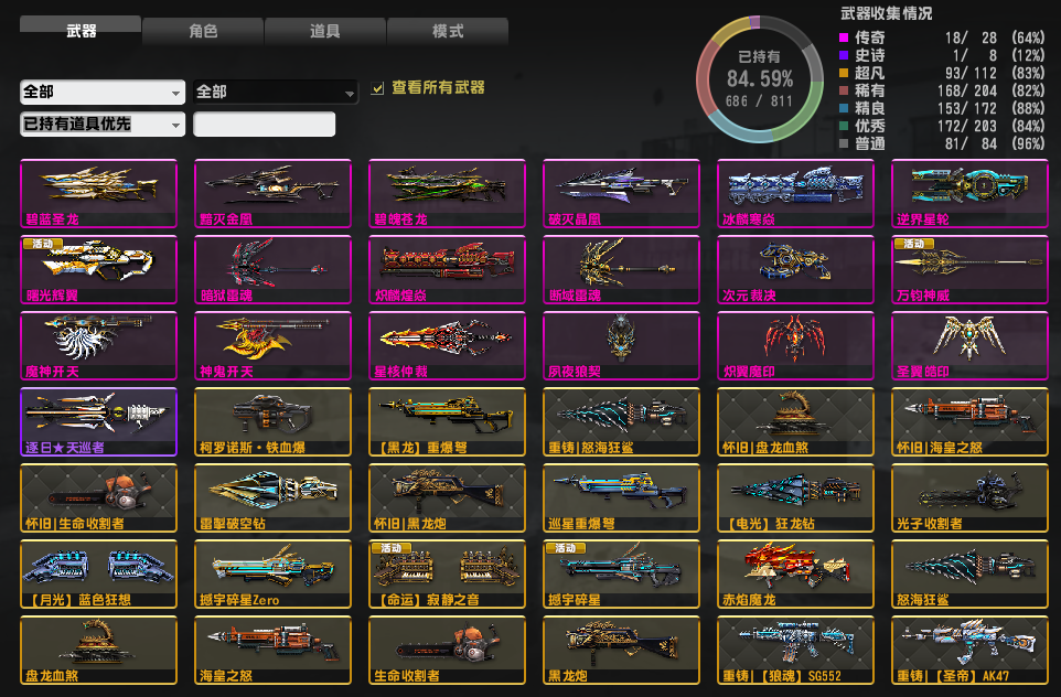 1、85高持有1300级拉风青称荣誉、黯影狙黯火机枪、神威次元狼雷双龙、绝版叶无心、生化、感染、灾变毕业号,怀旧武器全套、多美女角色、全神、黑虎纹身、多翅膀、闪电光束,1-24全赛季66配件,十周年,2、极品强化武器,全红僵尸皮肤、武器全皮肤、刀具俱全、适合玩全模式 3、请您收藏起来、多多好评、不喜勿喷、有需要改善加配件的请您好评留言、谢谢您的支持 4、武器已jie图,游戏已去黑雾 ,性价比很高的一个账号,最后祝您愉快游戏