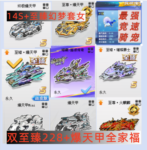臻藏摇滚传奇 s车至臻爆天甲 至臻璀璨爵士【双228】 火麒麟至尊爆天甲终极爆天甲爆天雪 5级奥莉娜 最强骑宠游鸿蓝鲸+10
