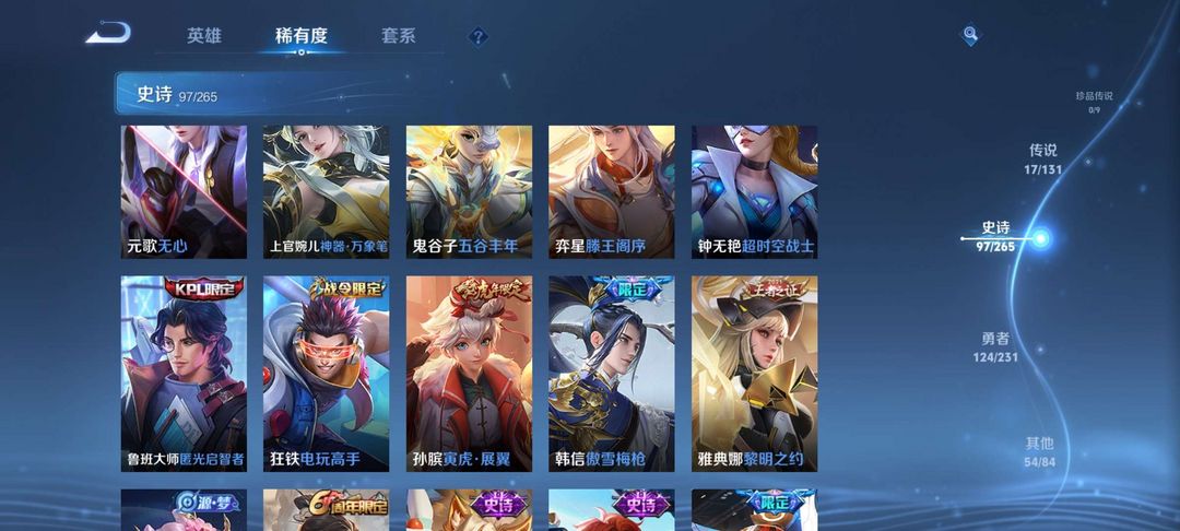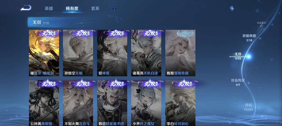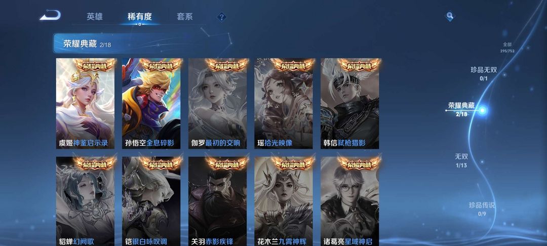 v8,300+皮,全铭文,全英雄,两典藏猴子虞姬,曜无双,传说17,限定多