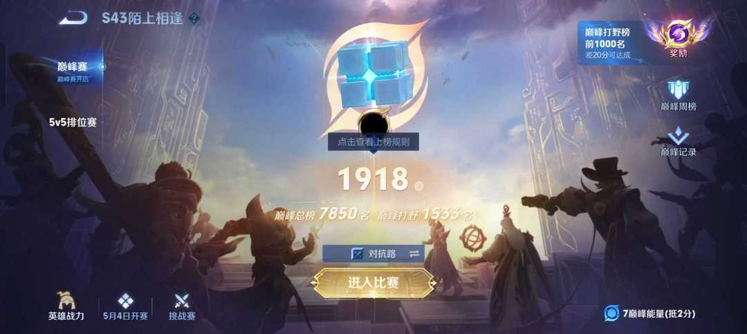 不能打巅峰赛⚡巅峰总榜万强闪电框小魔方⚡66段打野在榜省10马超镜裴擒虎市澜禁巅峰