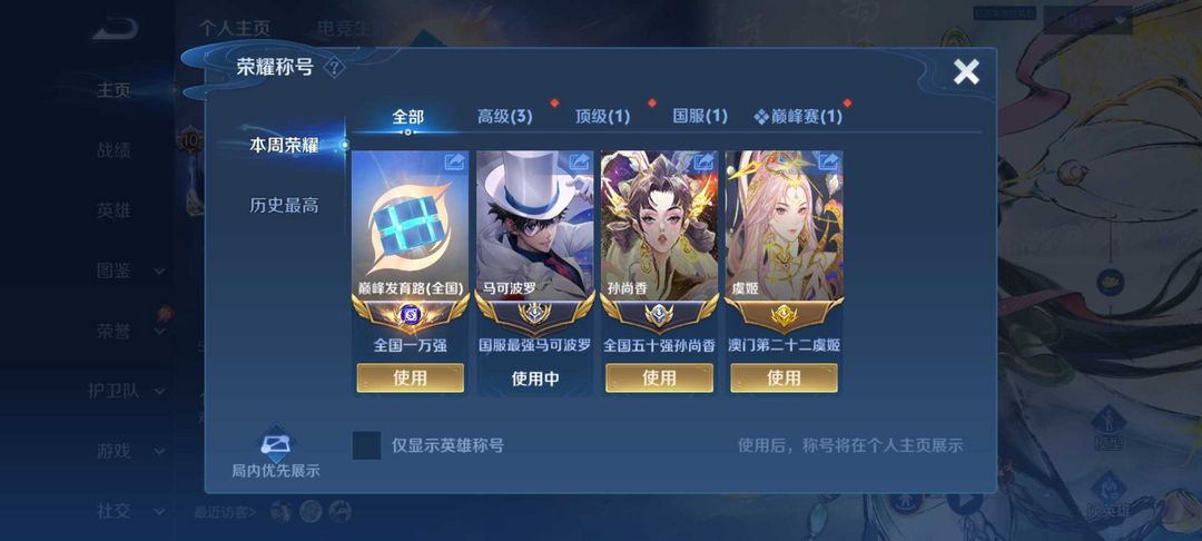 4月在榜大国标马克波罗⭐️现巅峰万强闪电框❤️满皮国服v10⭐️正式服禁巅峰❤️怪盗基德国服孙尚香