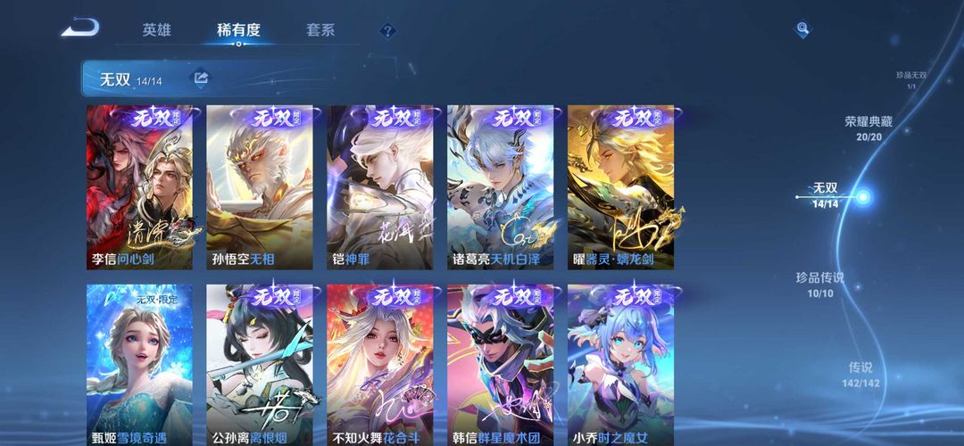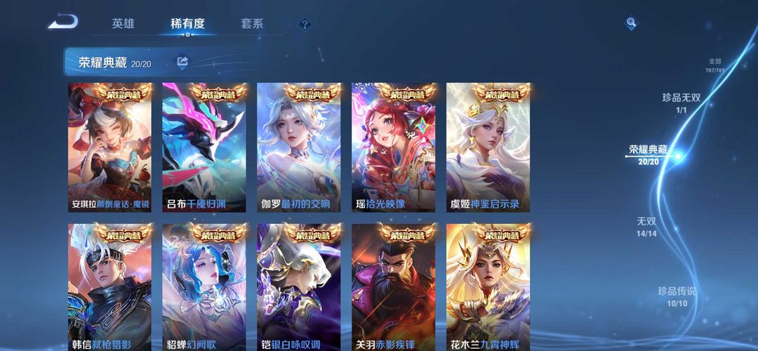 788皮荣耀v10❤️满皮肤满水晶满无双满珍品❤️吉星福星福运全套❤️历史4国服芈月貂蝉狂铁