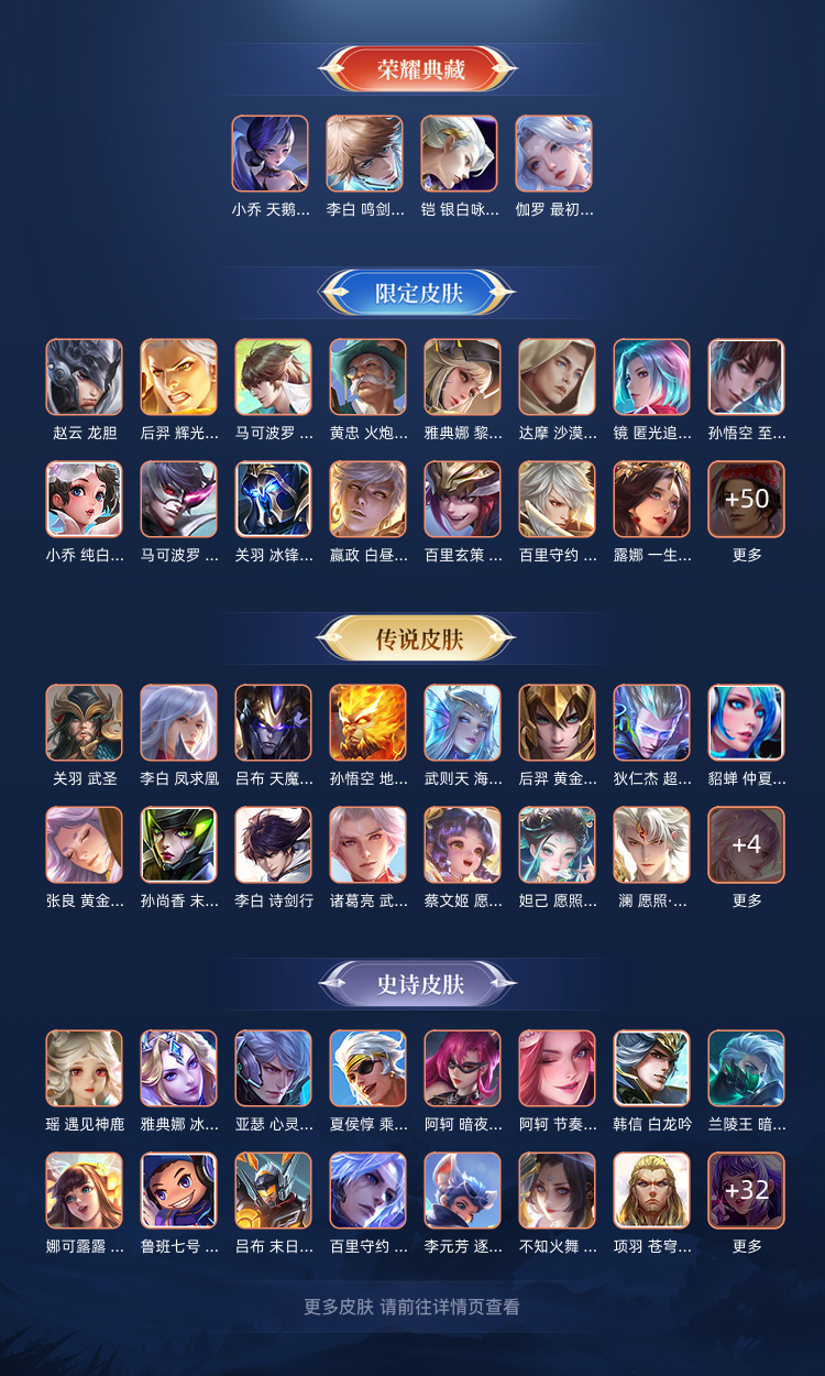 贵十,445款皮肤,四荣耀李白,伽罗,恺,,黑天鹅。英雄武则天