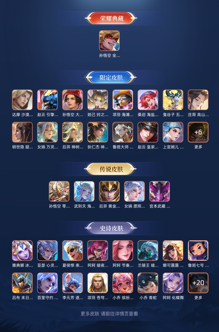 满英雄,满级铭文,猴子典藏皮肤,还有很多史诗皮肤
