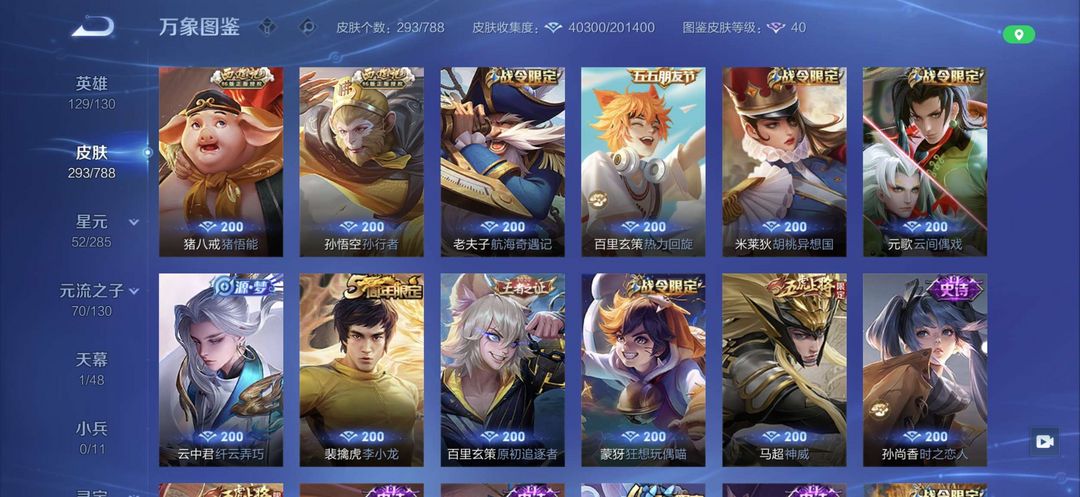 至尊宝.大圣娶亲,孙行者,神威青龙志,白虎志等热门皮肤