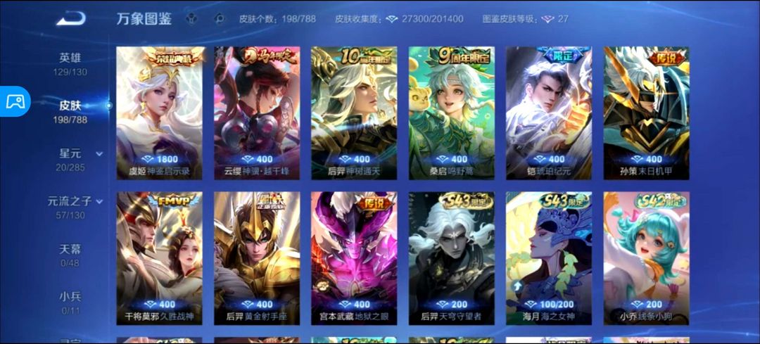 虞姬荣耀典藏,云缨年限,凯的限定,干将FMVP,后羿射手座,宫本地狱之眼,