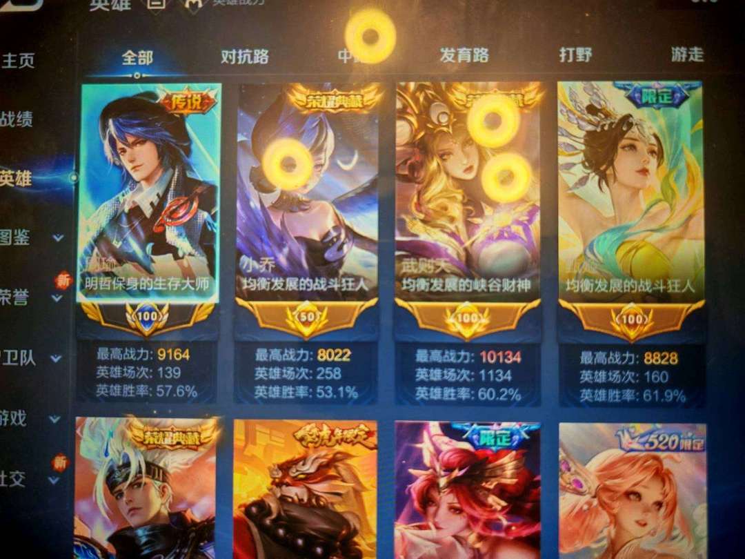 无双贵族,605皮,国服周瑜,省标小乔,甄姬,武则天。10无双,18珍品女神号