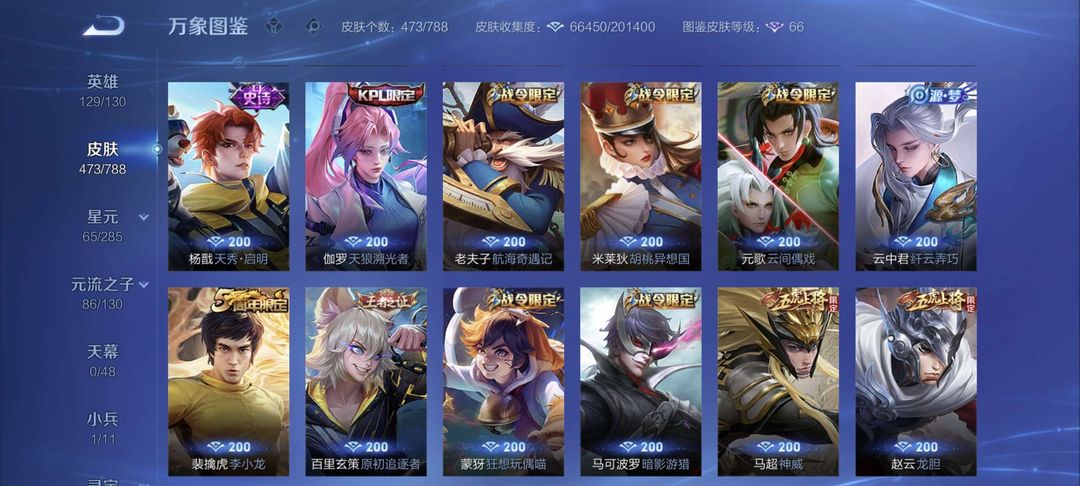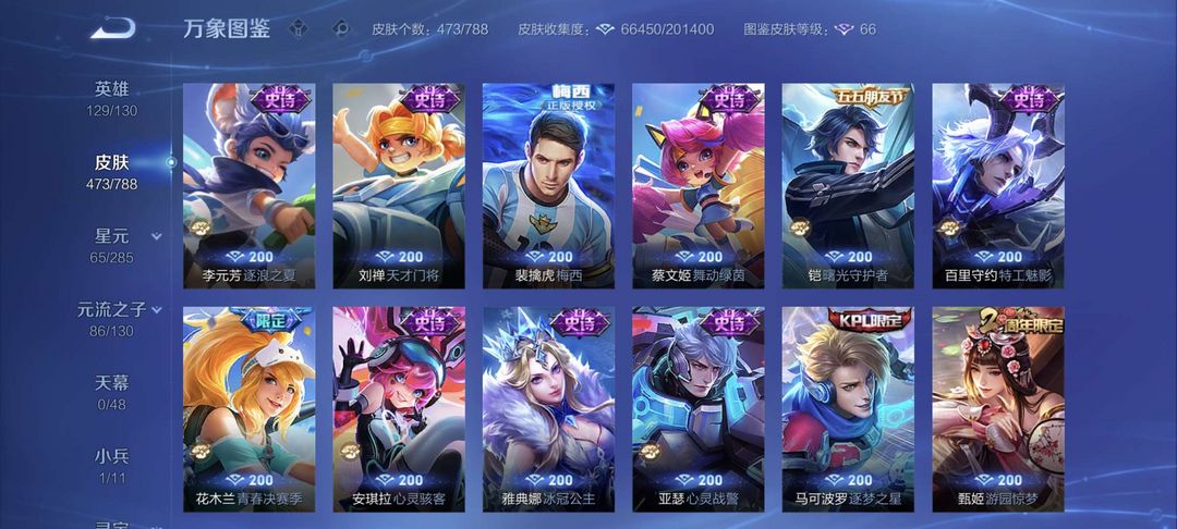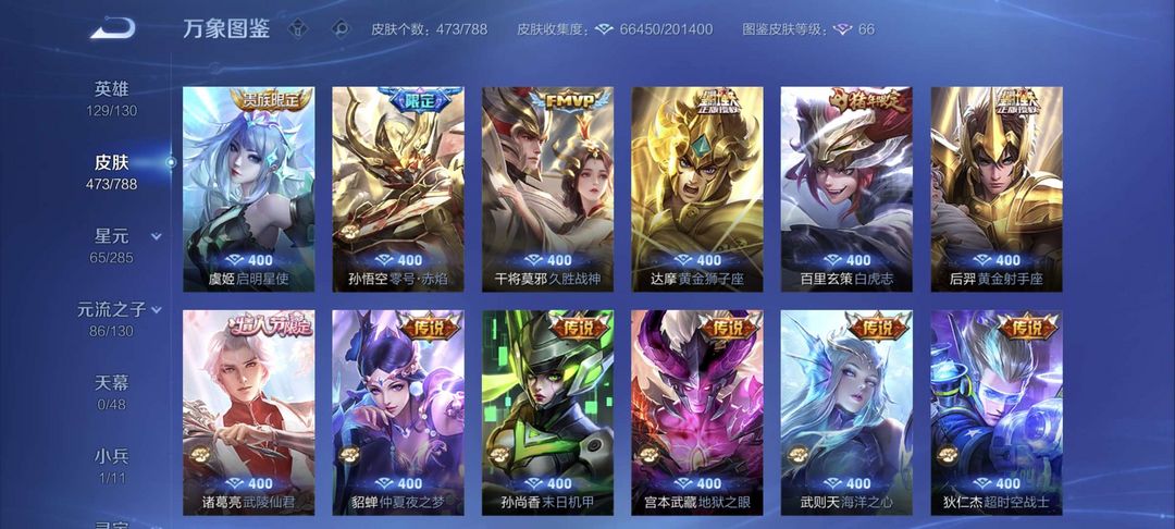 473皮肤英雄差武则天,贵族八梅西武陵仙君虞姬年限澜年限关羽冰封战神等多款皮肤