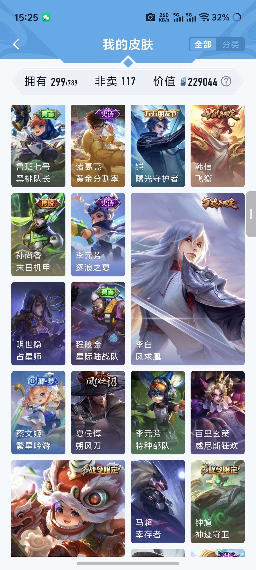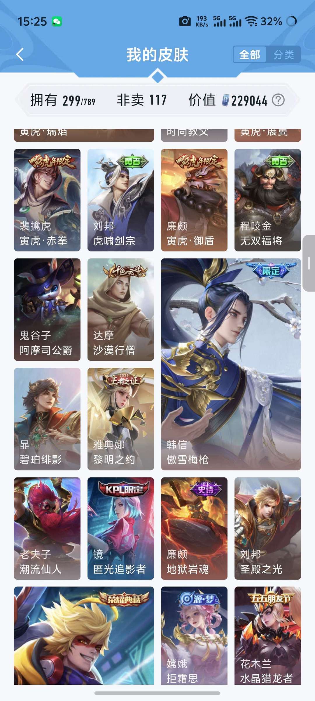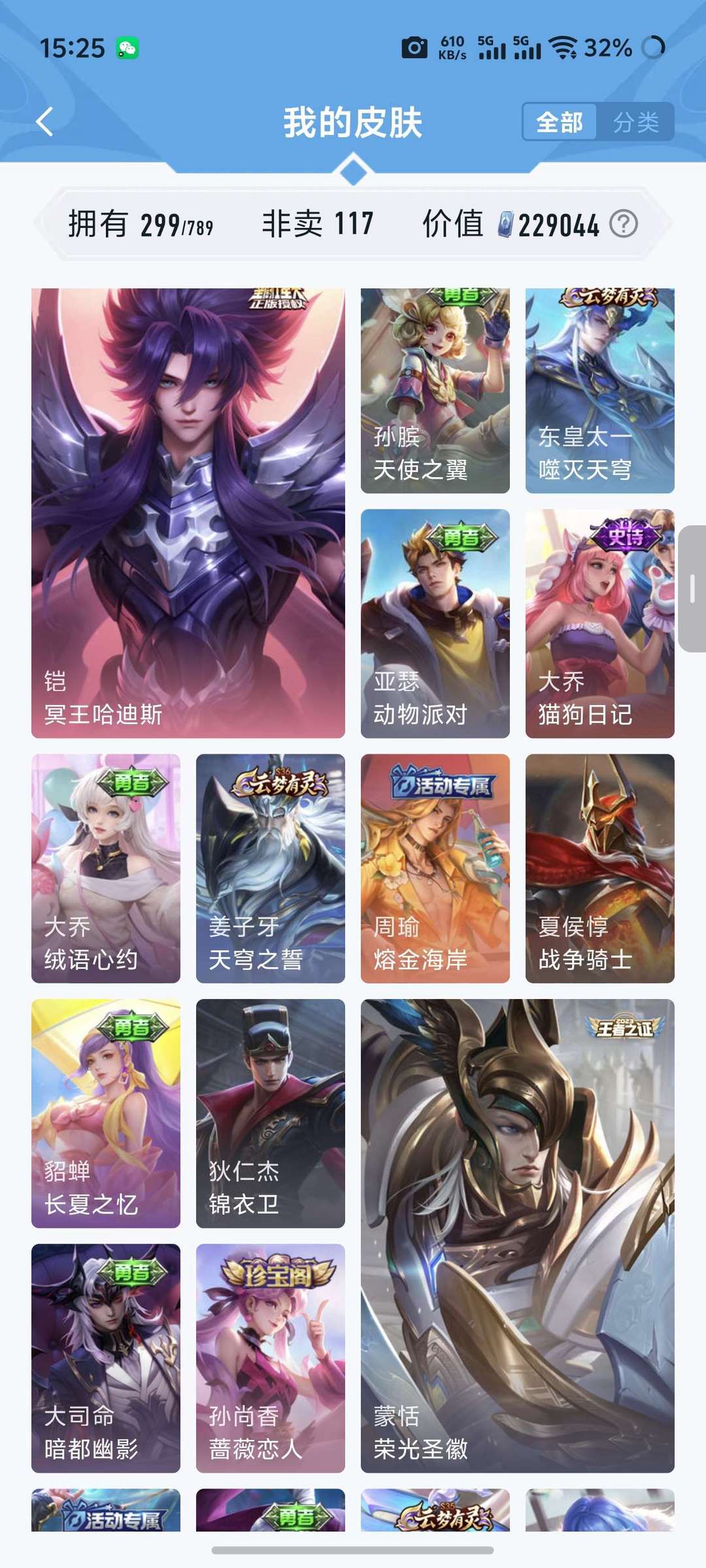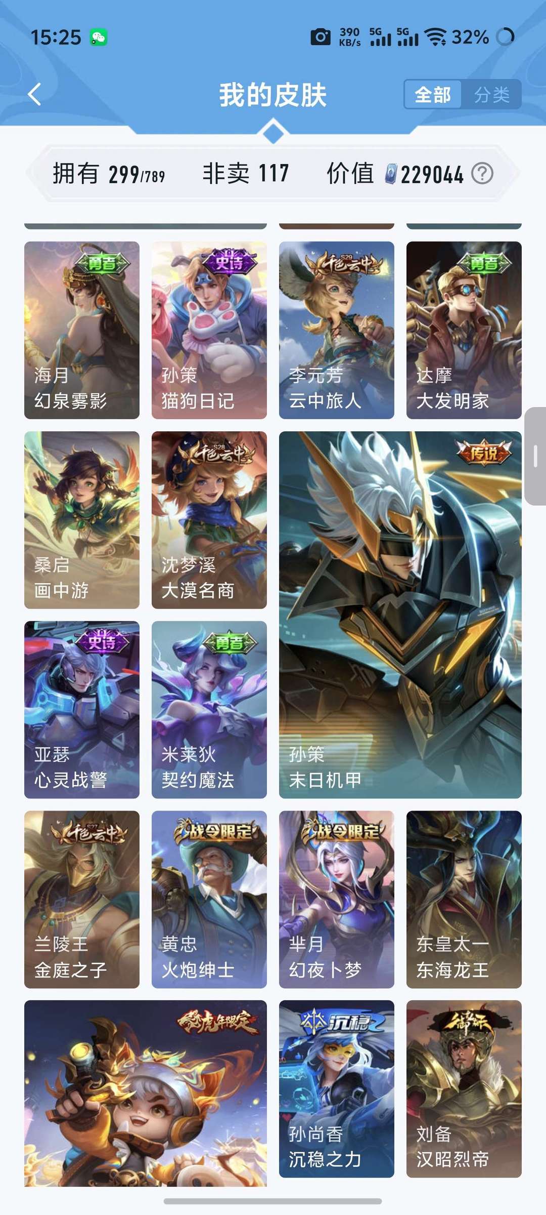 1个典藏,84个史诗,23个传说,133个勇者,16战令,39赛季,103活动限定,7个周年,全铭文