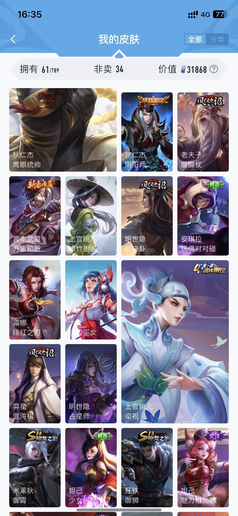 【v4 61皮】v4低价小号练英雄账号 不允许改名 可排位可娱乐