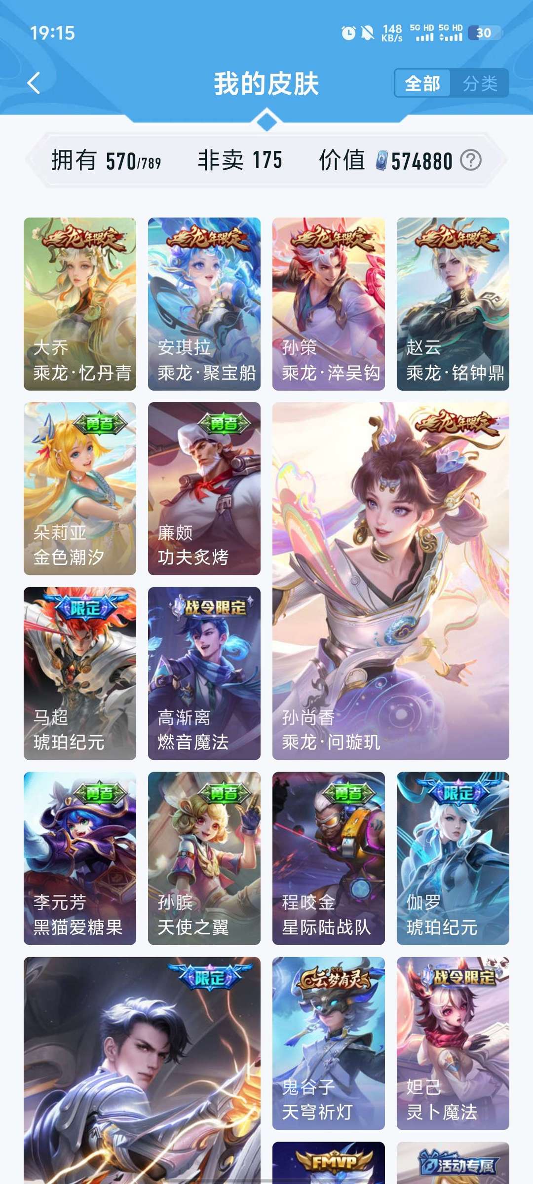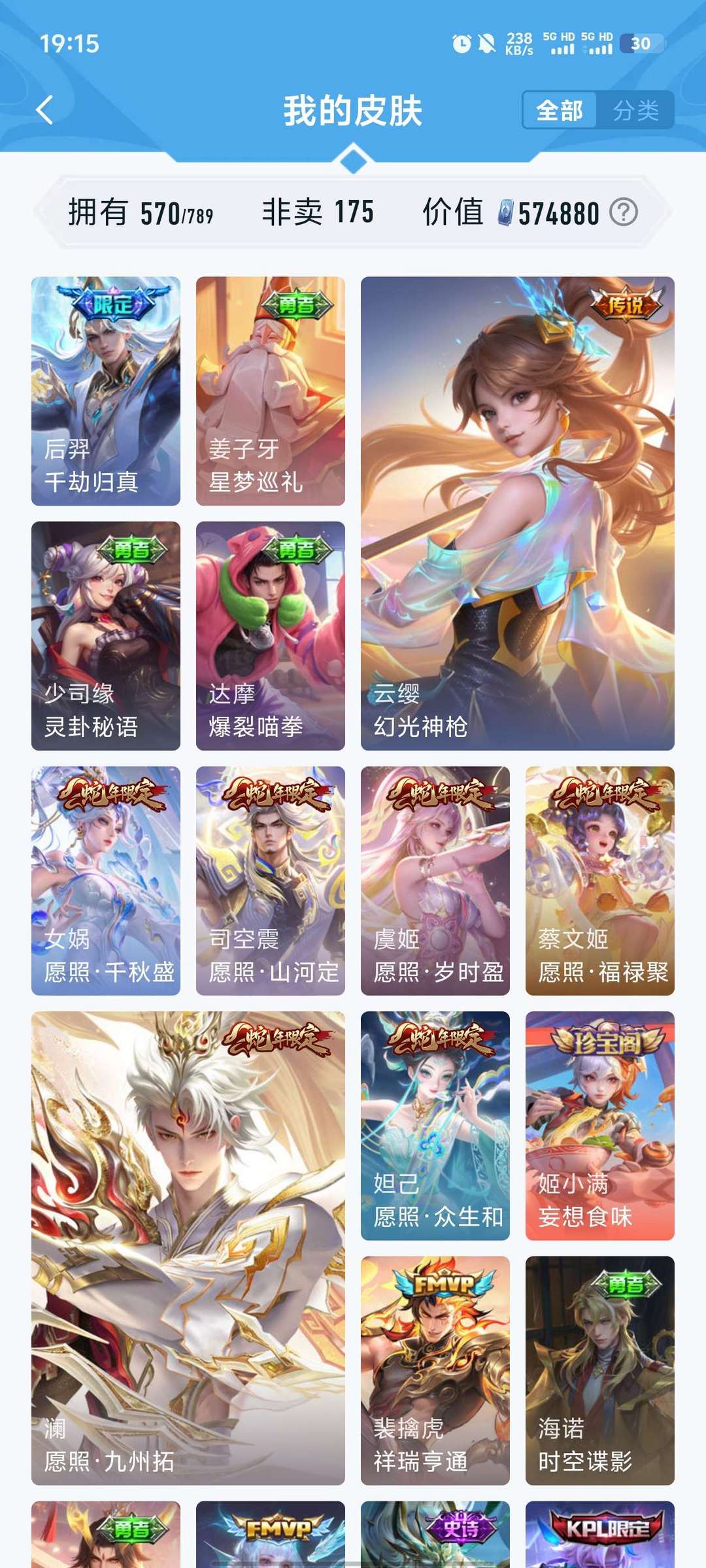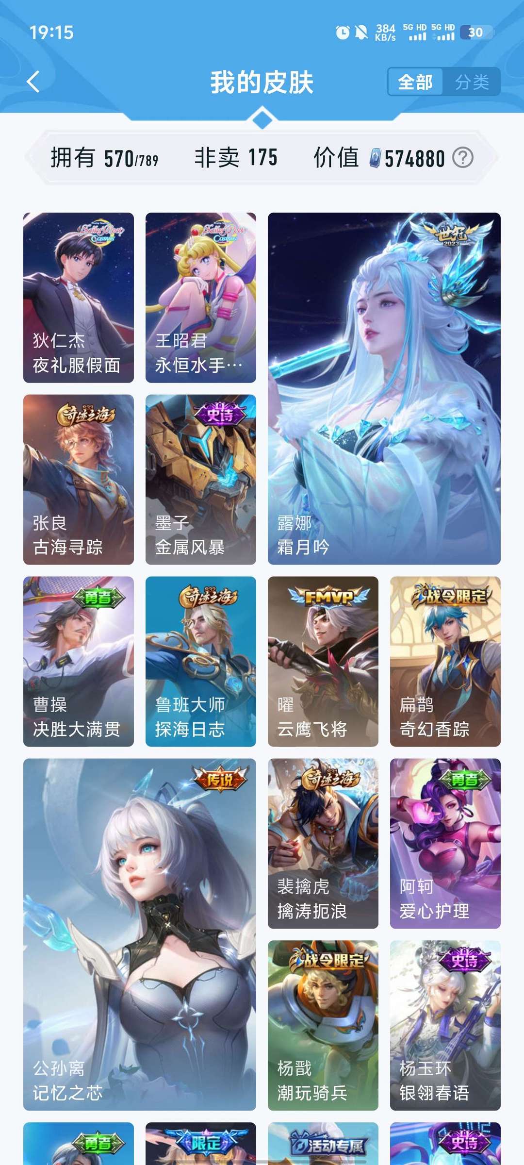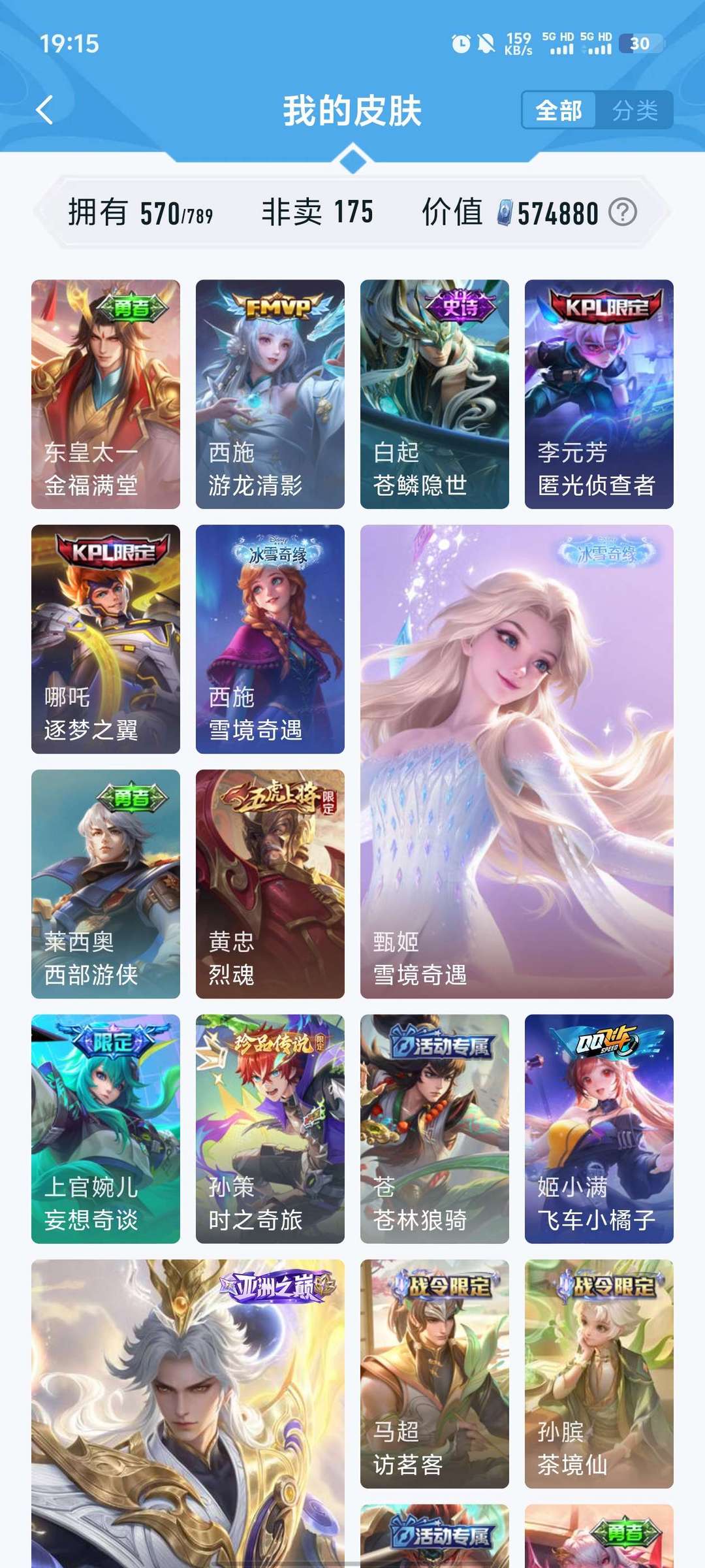 129 英雄+570 皮肤+满级铭文+段位本赛季未打