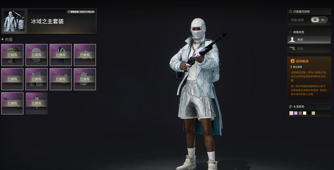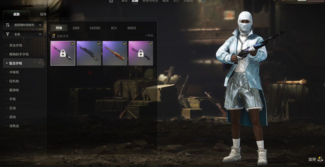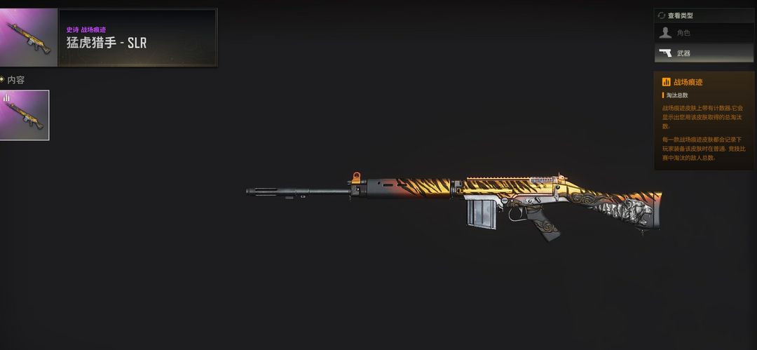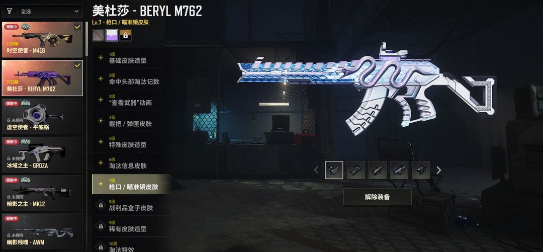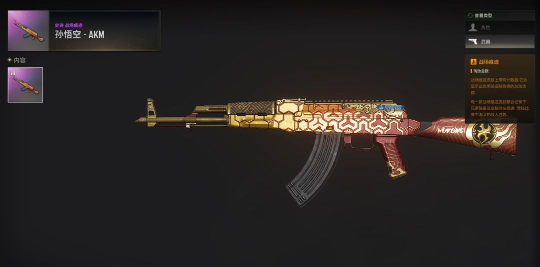 2、稀有皮肤无慈悲M416、孙悟空AKM、灵魂枷锁AKM、全力出击SCAR-L、镀金GROZA、希腊怪物QBZ、幽灵之握M24、双色MP5K、猛虎猎手-SLR。