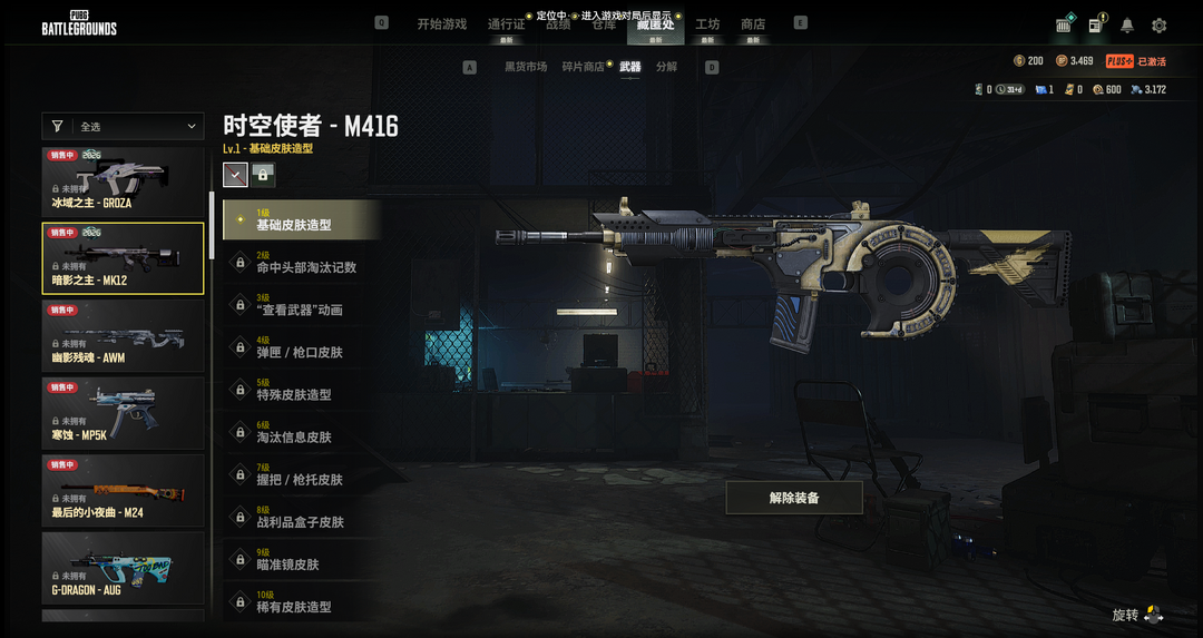 二级密码879016时空使者M4镀银AUG银河SKS黄金狗砸沙黄道SKS孙悟空AK老兵套装