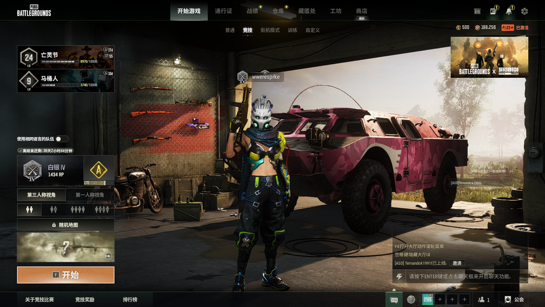 可排位二级密码667788✅成长型时空使者M416寒蚀MP5K品红色烟雾弹多利安✅粉红色两栖装甲车柏